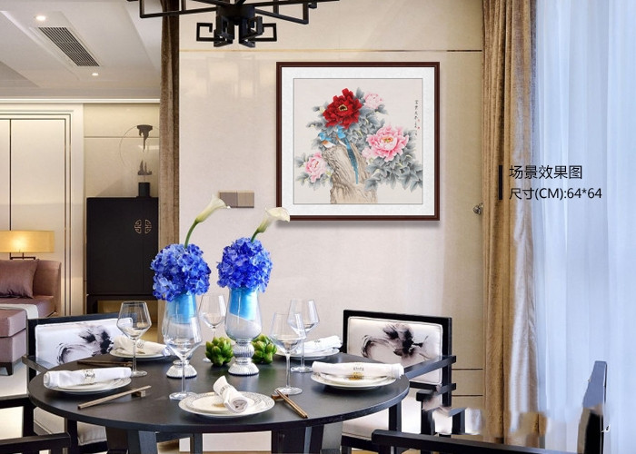 “好看、吉祥、好品味”这三个特点一个都不能少,清新雅致的工笔花鸟画便是较佳的选择。花鸟画题材丰富,画面灵动,挂在餐厅,让整个用餐环境轻松、明亮,让家人都能拥有一个放松温暖的用餐心情。