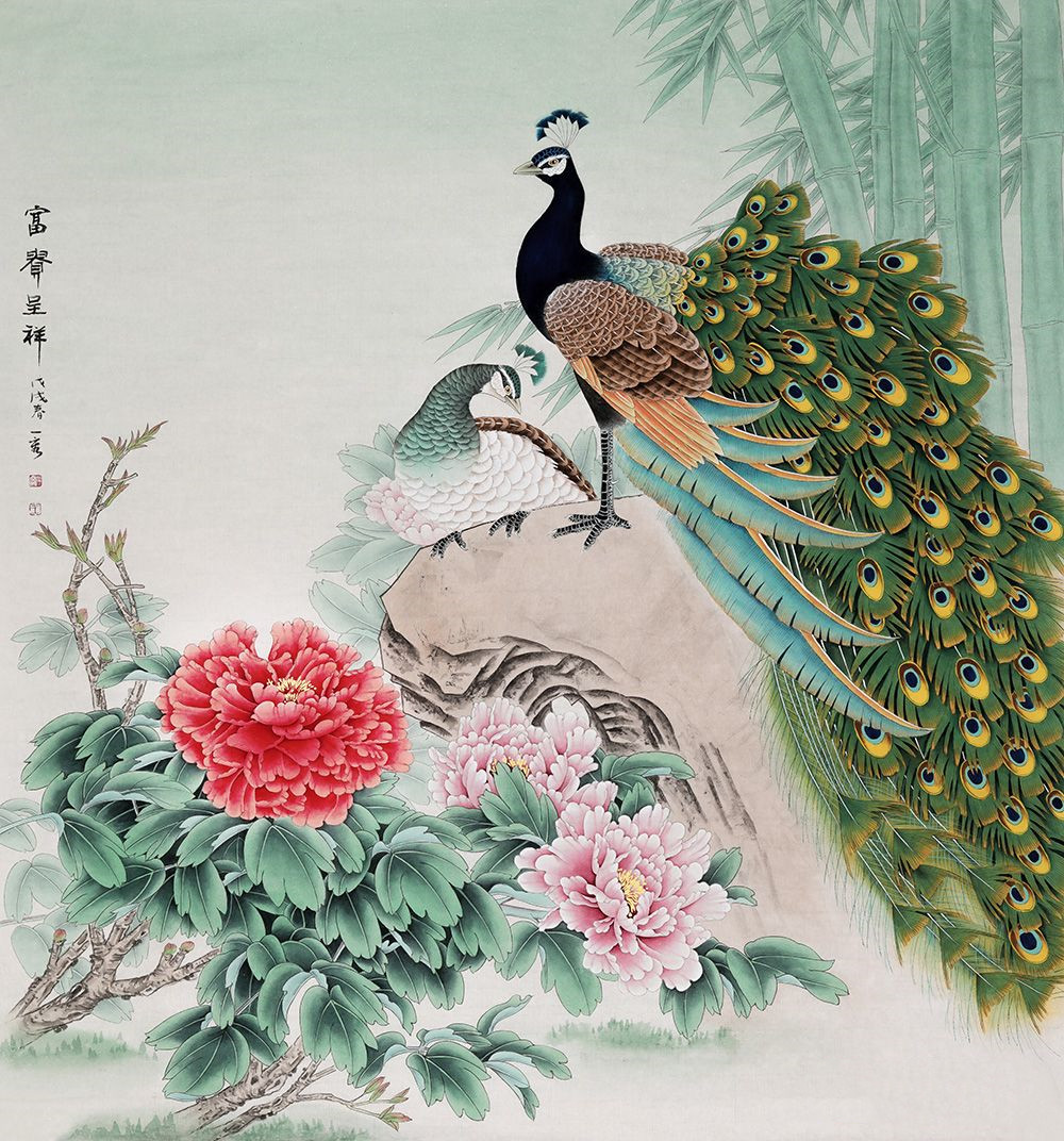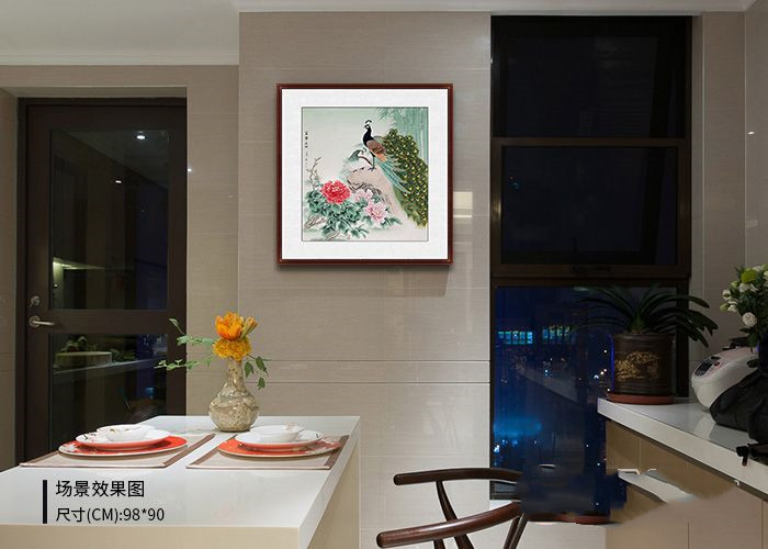 餐厅花鸟画作品欣赏四:温馨淡雅,富贵吉祥孔雀图