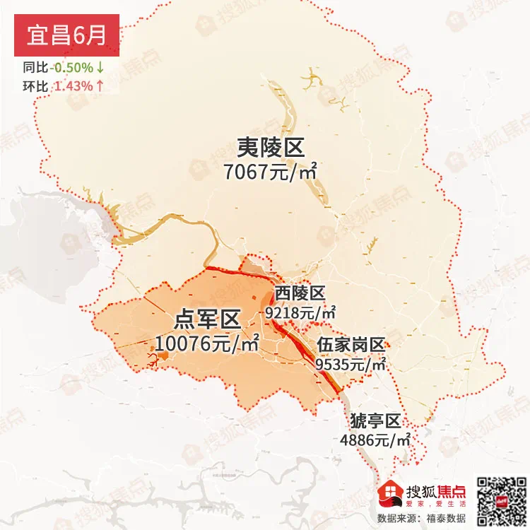 宜昌6月均价为8338元/㎡同比下跌-0.50%↓,环比上涨1.43%↑