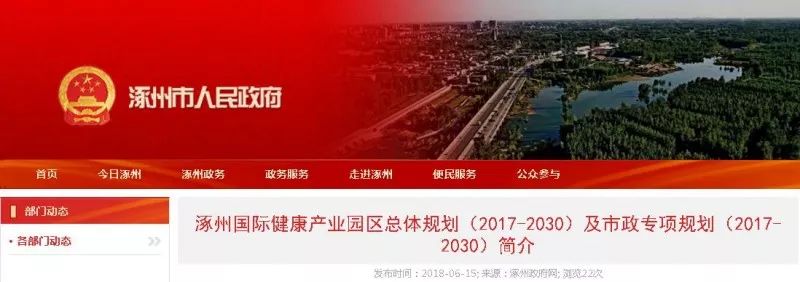 2018年5月,《涿州国际健康产业园总体规划及市政专项规划》经河北涿州京南经济开发区管理委员会规划建设局组织召开的专家评审会原则同意通过。