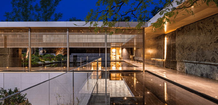 北京悦府,于内城繁华之地,融合“雅、古、隐、奢”审美及艺术品位,将自然之美、空间之美和二环的文化之美融为一体,汲取中轴文化打造对称的园林布局,于镜面互映景深,流云光影与自然山林回转镜中,形成远、中、近不同景深的精致质感。以「两大庭院,八重生活艺境」创造奢隐于市、漫步东方的文化体验。