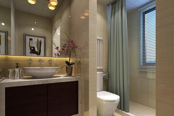 卫生间依旧随风格基调保持素净,没有多余的色彩,奢华大气,采用石材与镜子,为其增加变化感,充分利用材质特点,传达视觉上的平衡。