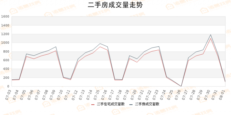 08月01日,北京市二手房成交96套,环比昨日下降87.13%,二手房成交面积8520.42㎡,环比昨日下降86.47% ;其中,二手住宅成交90套,环比昨日下降87.05%,二手住宅成交面积8161.44㎡,环比昨日下降86.56% 。