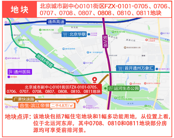 通州运河0101街区上周被中建玖合底价拿走了,地块位置不错就在运河边上整个大地块分为了7块小的住宅用地,土拍刚结束我就跟项目的业务员聊了聊,按照业务员的话说这次的产品做的特别好,我试探的问了问是不是前后落地窗配大阳台业务员冲我一笑,总之项目预计在本月底或者下月初就有消息了,总之您在通州有购房需求想买个正八经的河景房,可以等等中建的产品。