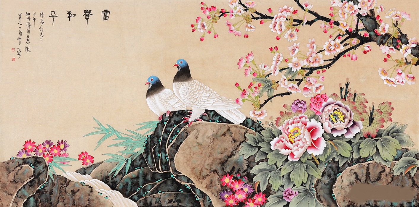 唯有牡丹真国色,花开时节动京城。自古以来牡丹就是国人心中的挚爱之花,花语富贵吉祥,也常用作馈赠他人礼物。王一容老师的牡丹画佳作《富贵和平》,作品技法娴熟,大气唯美,笔力不俗,将牡丹花与鸽子优质结合,给人以温馨质朴之感,并带来富贵、和平、和美的祝福。