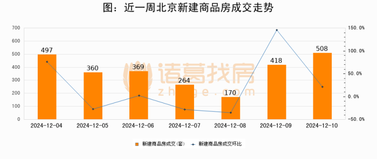 【北京成交日报】12月10日新房成交508套、二手房976套;涨价房源124套