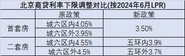 同时,此次北京新发放的商贷利率下限也有明显调整。首套房商贷利率下限调整为LPR减45个基点,目前为3.5%。二套房商贷利率下限调整为五环内3.9%,五环外3.7%。
