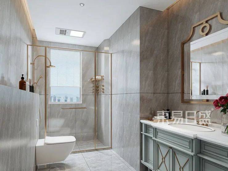 冷条纹的墙面和地面均采用同系列的纹路的大砖,更能展延空间,显得浑然一体。干湿分离的设计,让卫生间动线更加合理,更加实用;金属线条的淋浴门和金属边框的梳妆镜相互呼应,精致又复古。