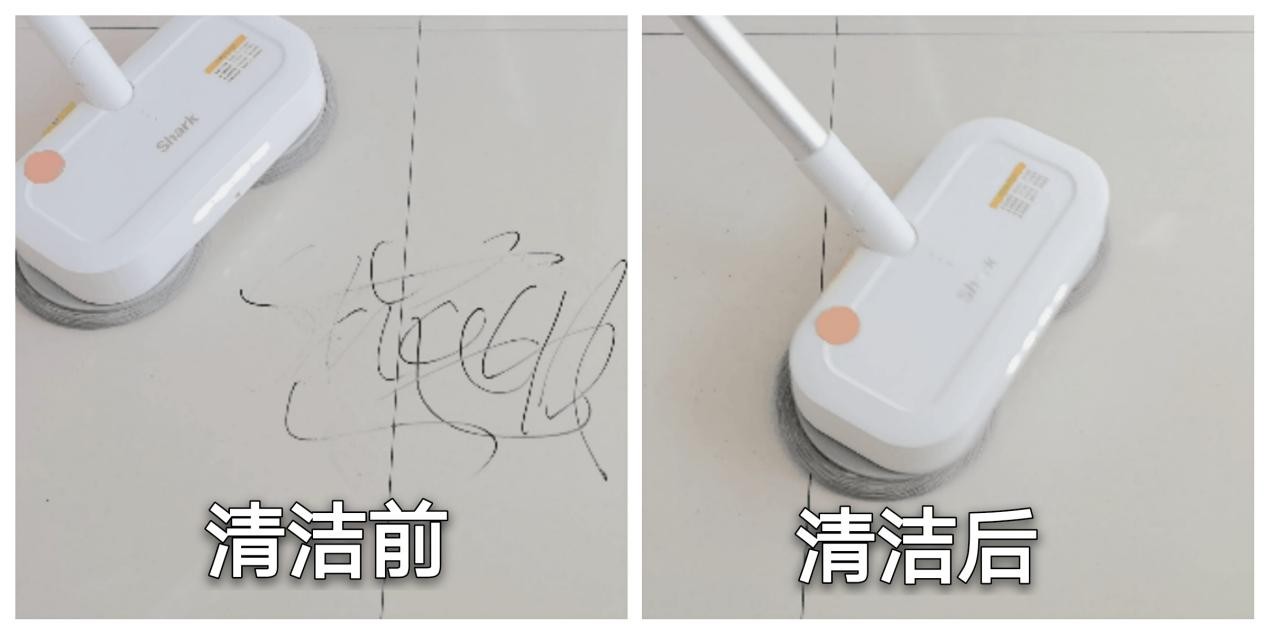 可能有人会质疑,这样的拖把真的拖得干净地面吗?那我们直接来说下鲨客电动拖把C3的清洁力,鲨客电动拖把C3每分钟的转速在200次,相比手动拖地,高效的不止一丁点儿。高速旋转所带来的的清洁力就算是厨房油渍也能轻松去除,更别说地面的普通污渍了,完全小菜一碟。