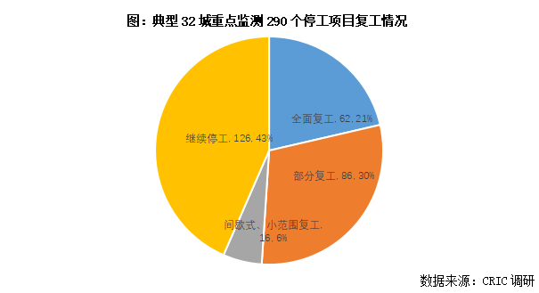 截至2022年12月31日,在32个城的290个项目中,有62个项目全面复工、86个项目部分复工,合计占比为51%。