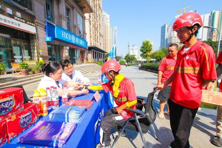 在渝北区市场监管局的关爱下,桐君阁药业送来暖心药箱与藿香正气液等解暑物资;渝北区第二人民医院医生现场为快递员测量血压、开展职业健康义诊;重庆贝壳美家志愿者分享“家装避坑指南”。这些平日里奔波忙碌、无暇关注健康的外卖小哥,在此感受到了细致关怀。