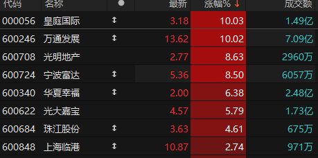 房地产板块开盘领涨 皇庭国际、万通发展涨停