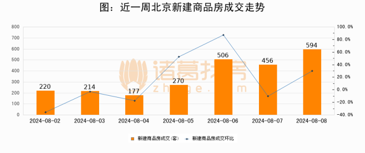 【北京成交日报】08月08日新房成交594套、二手房604套;涨价房源101套