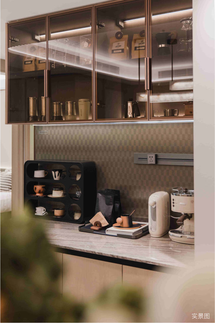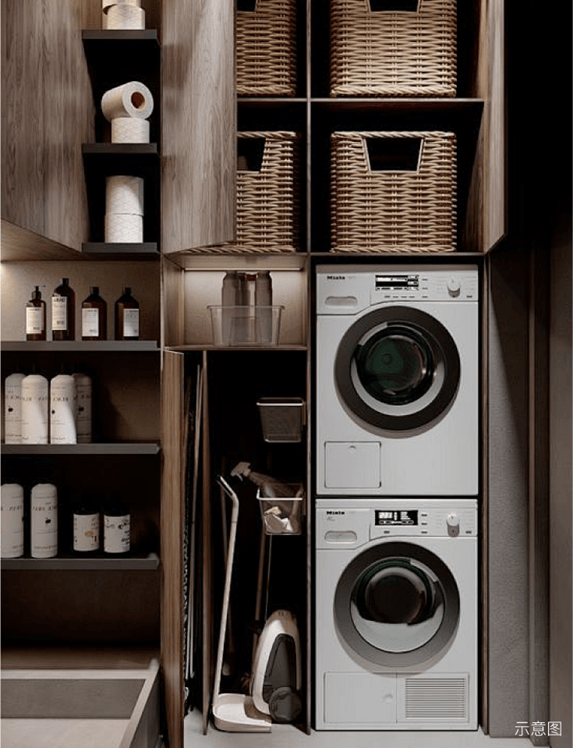 作为精致生活的延伸,家政间链接餐厨功能区,集日常洗刷、收纳功能于一体,可放置生活杂物、进行家务盥洗等,节约室内空间的同时,让生活尊享便捷。
