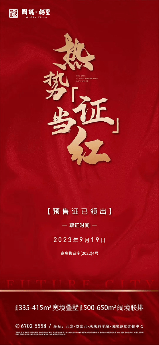 位于望京北部的国瑞樾墅,与城市共进,与时代同频,于2023年9月19日完成8栋56套房预售证办理。