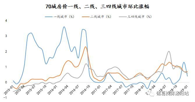 从统计局公布的70城价格来看,三线城市由于人口、经济、产业等因素变化较小房价相对来说较为稳定,2015年以来三线城市房价开始上涨,2016年、2017年房价上涨速度明显加快,2016年10月以后由于一、二线政策的调控,房价同比涨幅开始下降,三线依旧保持较高的增速,2017年10月三线城市的涨幅开始先进一、二线,且维持在10%以上的高位。受政策调控及棚改货币化改革的影响,2018年9月三线城市住宅价格同比跌破10%以下,此后同比不断下滑,2019年1月三线城市价格同比仅为8.39%。2019年受棚改货币化改革及规模的下调,预计三线价格指数会进一步下跌。