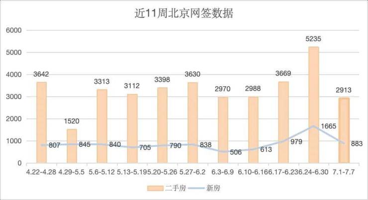 上周(2024.7.1-7.7)北京商品房住宅共网签成交3796套。