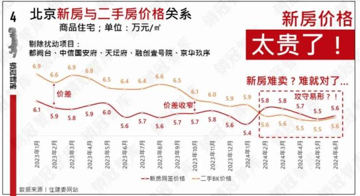 由于新房多在五环外,二手房多在四环内,故全市新房均价应比二手房均价低。