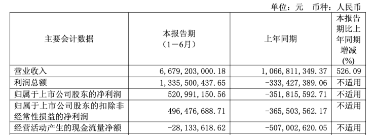 2025年上半年,公司业绩实现大幅反转,其营业总收入达66.79亿元,同比上升526.09%;归母净利润为5.21亿元,同比上升248.09%。
