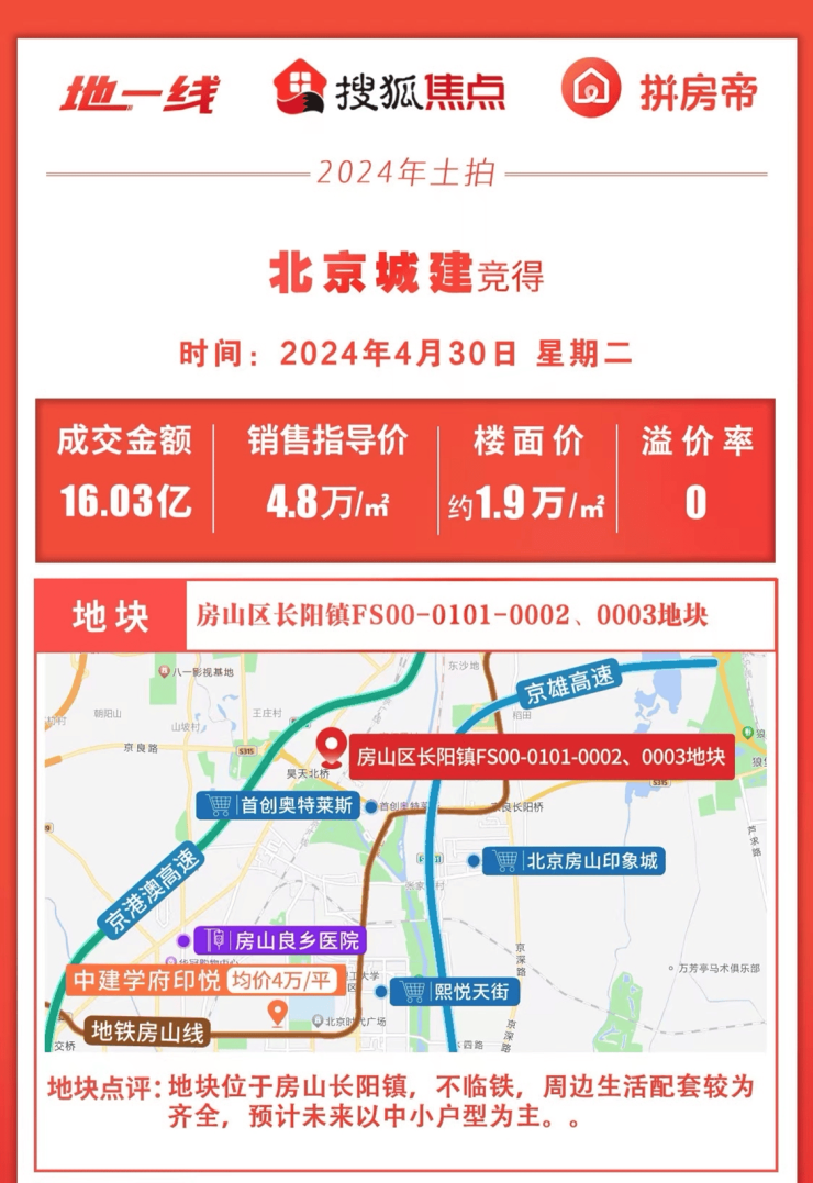 最终北京城建以16.03亿元底价拿下,住宅楼面价1.9万/㎡。项目销售指导价4.8万/㎡,浮动±3%。