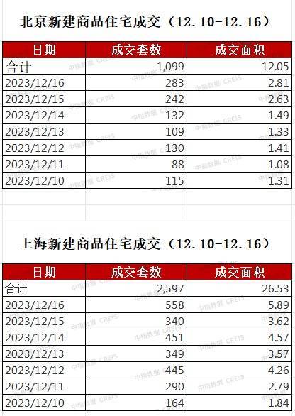 中指研究院数据显示,上周(12月10日-12月16日)一线城市整体成交面积环比增长35.26%。其中,北京成交面积12.05万平方米,成交面积环比增长25.0%,同比增长46.1%。