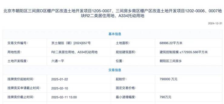 地块起始价79亿元,未设置地价上限,未设置销售指导价。