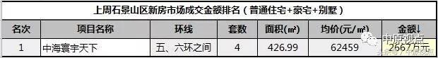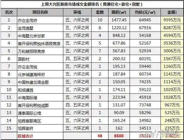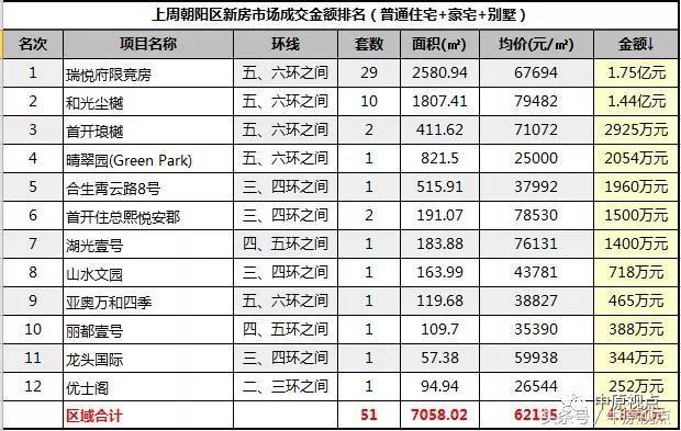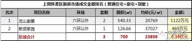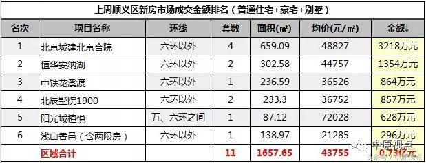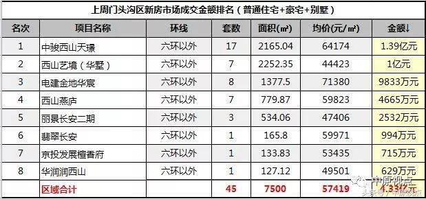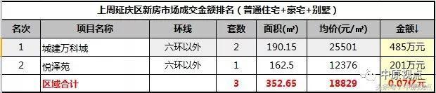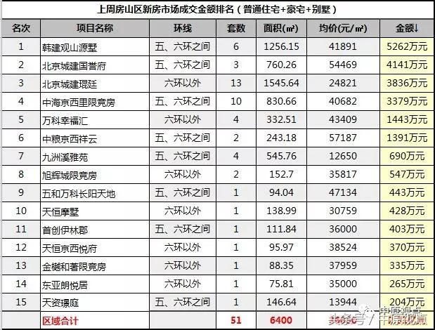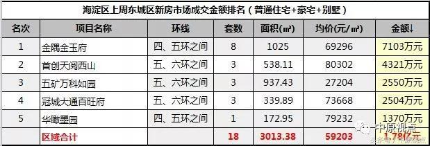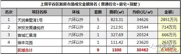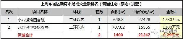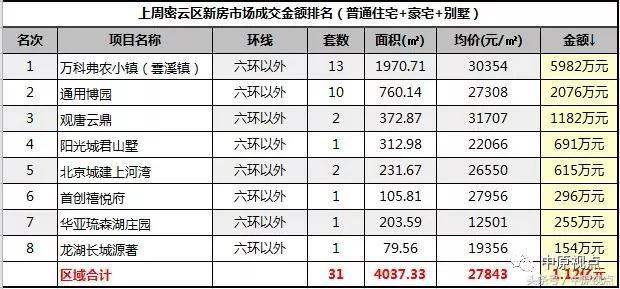 上周北京新建住宅市场(含普通住宅+豪宅+别墅)较新成交状况