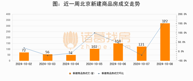 【北京成交日报】10月08日新房成交322套、二手房467套;涨价房源2299套