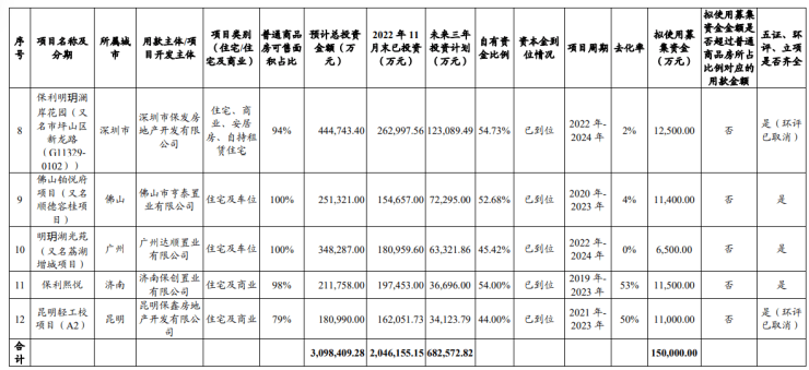 此次募集的15亿元将投资到12个地产项目中。