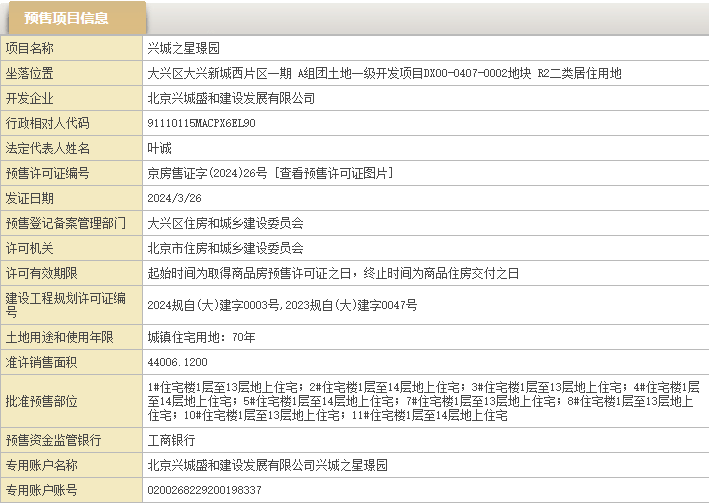 大兴的兴城之星上周也取得了预售证并在上周日开盘了,户型也是改善为主面积在150-270平米,这个也是我最好奇的项目之一,你别看人家没怎么做宣传但号称是不太愁卖,要不是我去售楼处感受过业务员接电话的状态,你就是打死我我也不信,本次项目一共取证242套得房率在78.92-84.35%之间,这个得房率整体还算不错,最终官方给出的数据是开盘卖了17亿!接下来我就等着看网签数据了