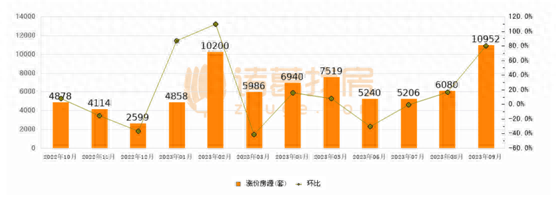 值得注意的是,从调价房源来看,9月北京涨价房源达10952套,较8月上涨80.1%。北京近两个月涨价房源量在6080套以上波动。与此同时,9月涨价房源占比回升,业主信心有所提升。