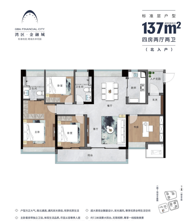 据悉,能建·湾区金融城规划有70㎡至142㎡2至4房全明户型,实现了刚需、改善产品全覆盖。其中,约101㎡的三居室户型,经典竖厅设计,三开间朝南,阳台宽度达6.4米,采光好,舒适度高。约137㎡户型,舒适四房两厅两卫设计,宽敞通透,方正实用,7.3米大阳台设计,可确保充足采光。而热销的88㎡3+1户型堪称刚需顶配,主卧套间+灵动空间+满窗设计,尽显超高实用性。