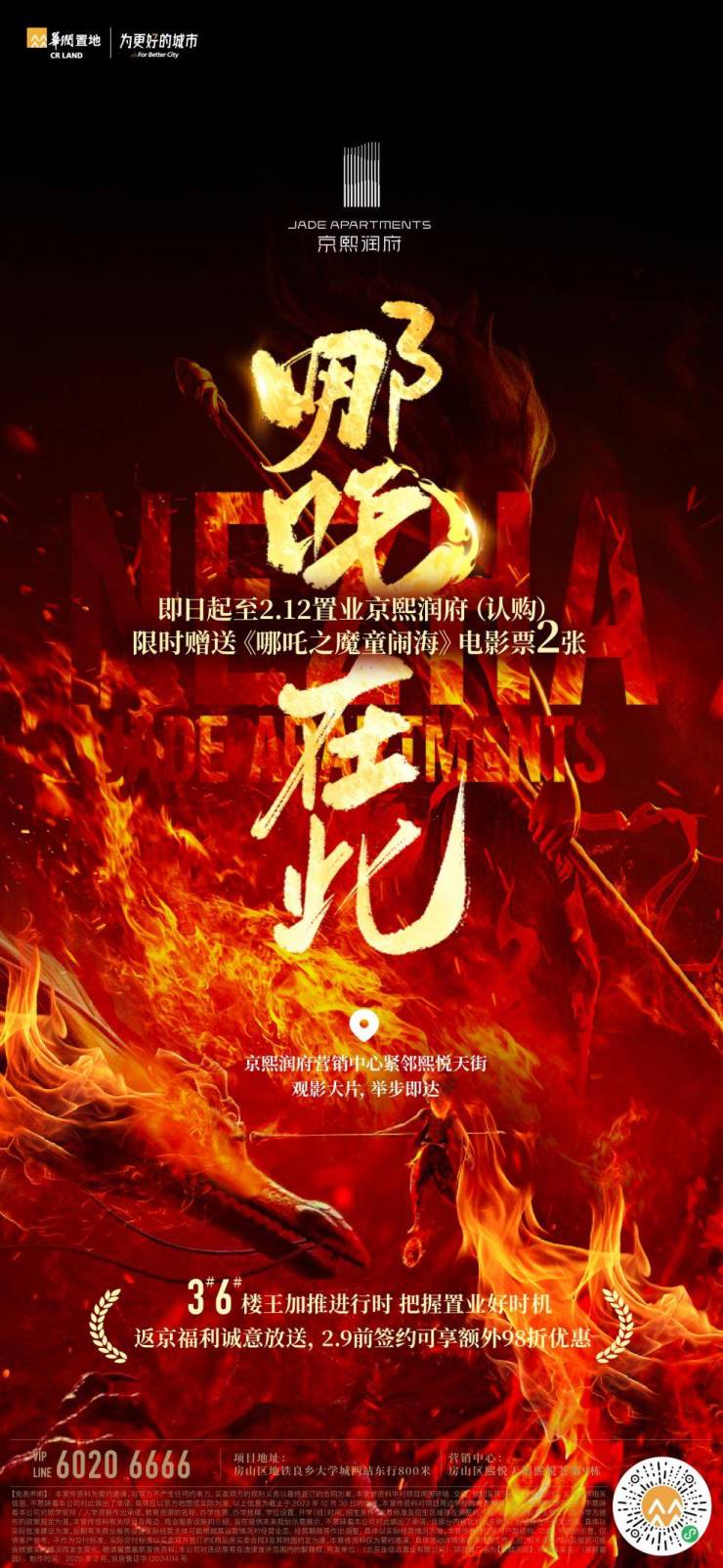 随着3#和6#楼王的持续热推,京熙润府再度引发购房热潮。即日起至2月12日,认购客户可获得《哪吒之魔童闹海》电影票2张,顶流与顶流,一起燃动新的一年。(数量有限,先到先得)