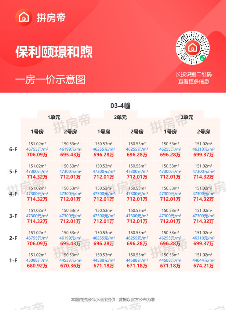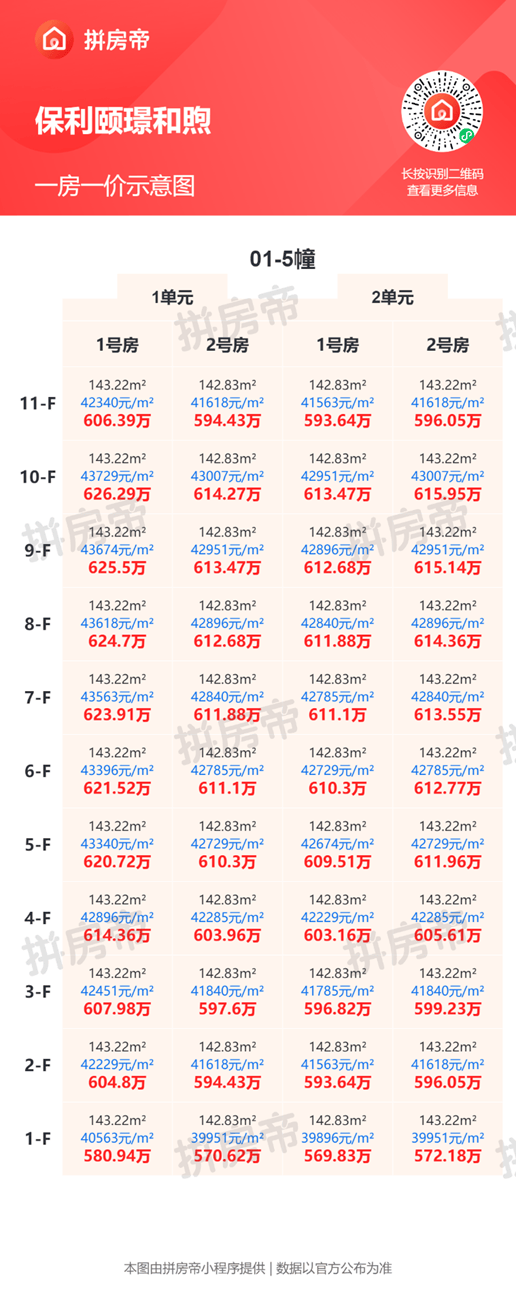 保利颐璟和煦一房一价,官方指导价4.3万元/平