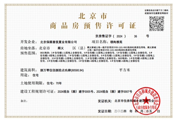 4月15日,由保利发展打造的颐璟和煦项目取得预售证。