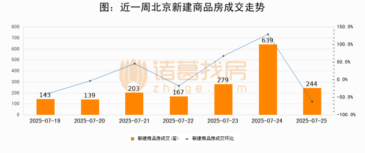 【北京成交日报】07月25日新房成交244套、二手房607套;涨价房源56套