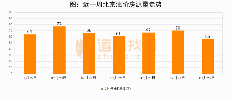 根据诸葛找房数据显示,北京24小时涨价房源量为56套,较07月24日减少14套,环比下降20%。与此同时,涨价房源占比小幅回落,对于购房者来说是一个入市窗口期,购房者可抓住时机入市。