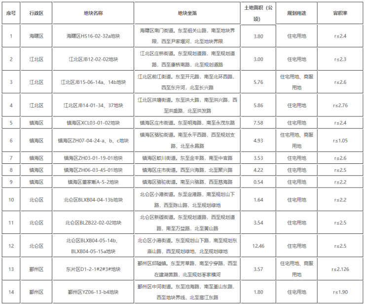 宁波公布第一批拟出让宅地清单:26宗地块土地面积98.29公顷