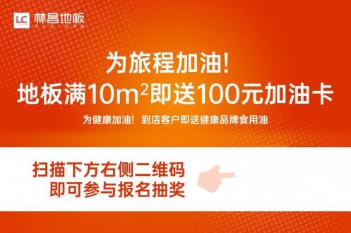 活动期间,凡购买林昌实木类产品(实木、多层、三层)地板满10m²,送价值100元加油卡一份,以此类推。