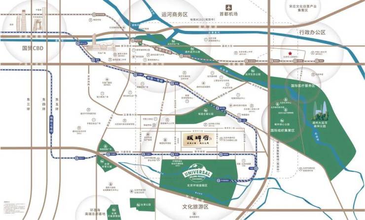 项目向北约800米是梨园城市森林公园,东南侧约800米是环球度假区。