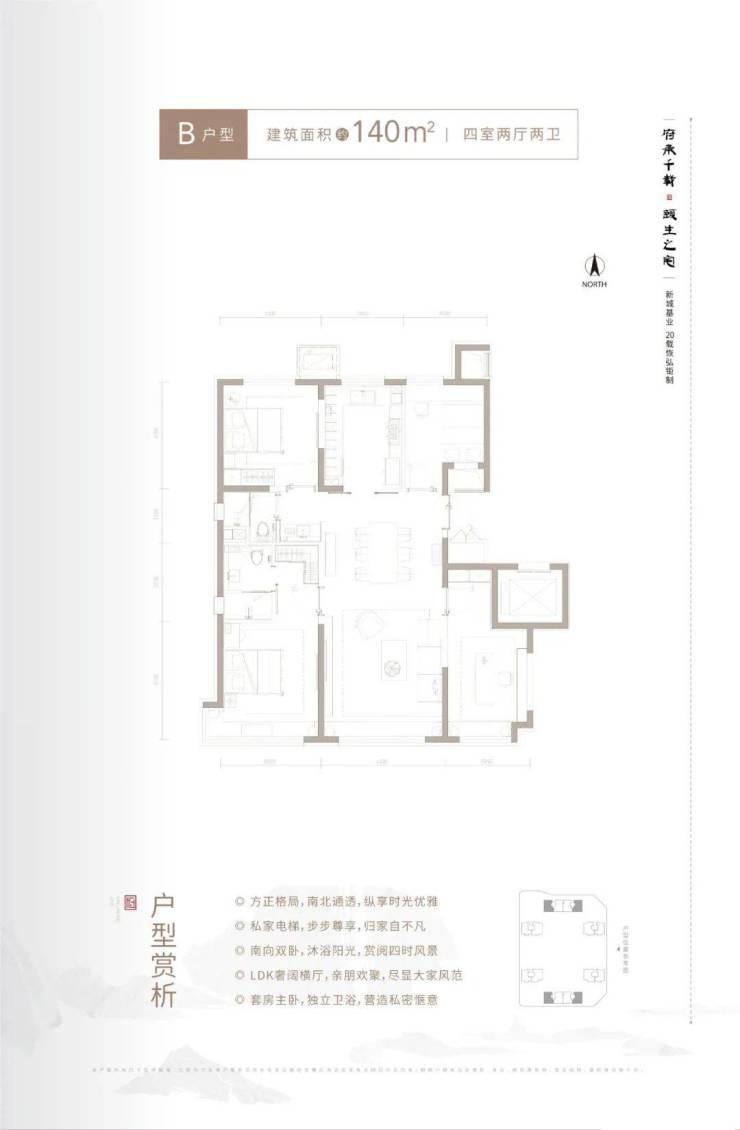 140平四室两厅两卫,户型比较方正,格局和136平类似,位于2/3/5/6号楼的外侧,有大阳台。