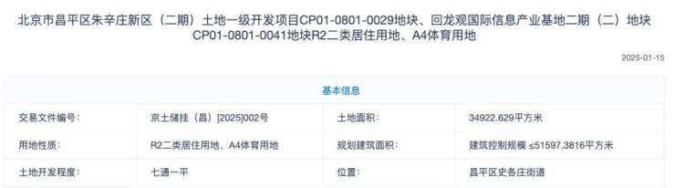 昌平顶流!朱辛庄0029地块成功出让