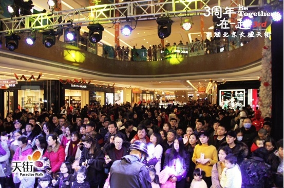 随着圣诞的临近,长楹天街也迎来了3周年生日,从耀世京城到多元化时尚平台,从跨界营销到消费升级,长楹天街不仅仅是一个购物中心,更是一个满足消费者对美好生活方式探寻的综合空间。现在,长楹天街正在逐渐成为消费者生活方式的发源地。此次3周年店庆的开启,是长楹天街力图为顾客点亮每个平凡的日子和全家人的美好记忆期望的又一探索。
