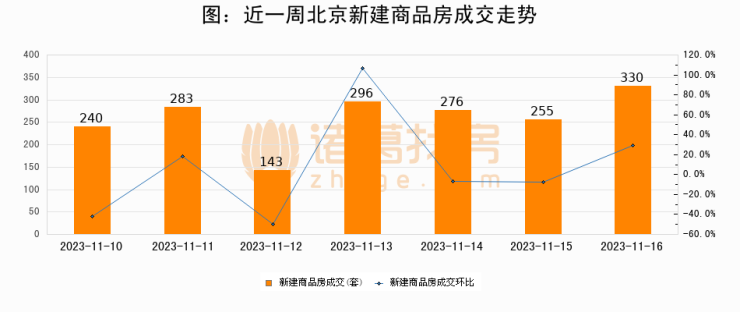 【北京成交日报】11月16日新房成交330套、二手房592套;涨价房源120套