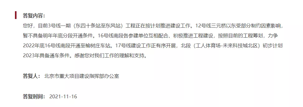 近期,北京重大项目建设指挥部办公室给出了解答: