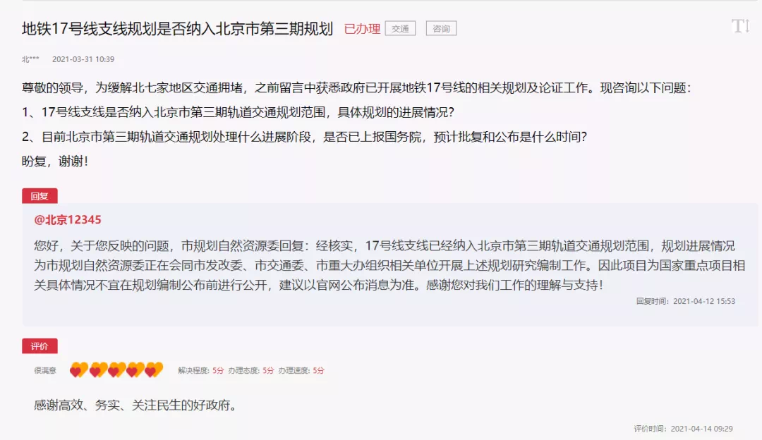 5、17号线支线已经纳入北京市第三期轨道交通规划范围