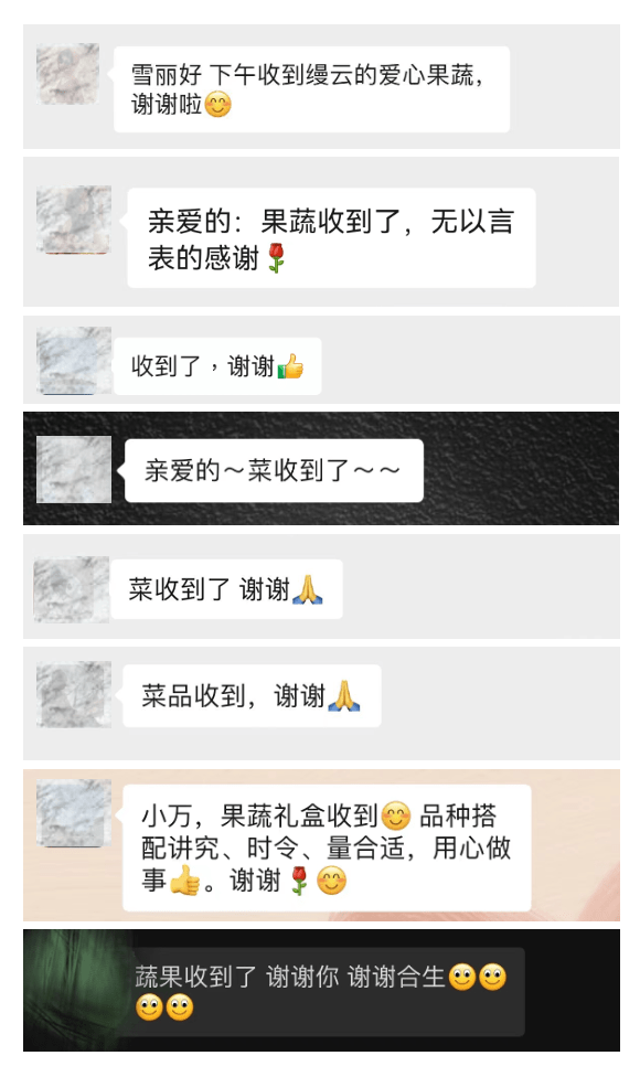 我们的配送服务团队,从早5:00完成物资清点及准备工作后,按照预先制定的较高时效方案,逐一配送——在多数配送区域处于封控/管控的情况下,我们的“缦FRESH心意”,最终全部完好送到了业主们的手中(根据不同地址的管理要求,部分送至封控货架,部分做到配送上门)。