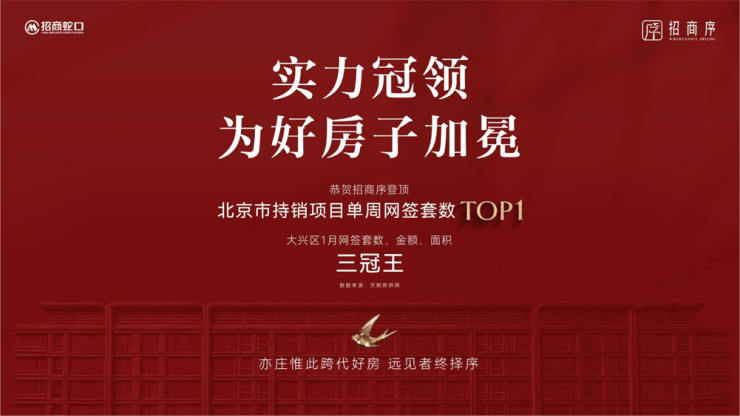 风起之时,方见韧草;时间沉淀,终识真金。北京市单周网签套数top1与区域1月网签套数金额面积三冠王,不仅是一份市场成绩单,更是对招商序“跨代好房”标杆的最有力加冕。