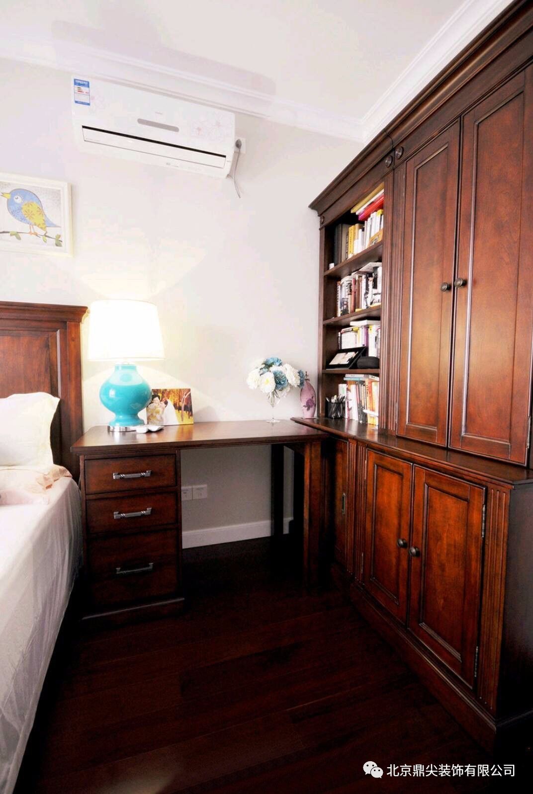 ▲ 主卧,抓纹地板通铺配深棕色的床,床头背景用了对装饰画,随着灯光的流转,一份不失精致的静谧与舒适感悄然流露。