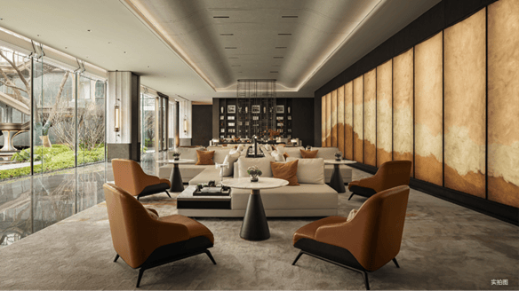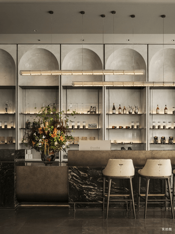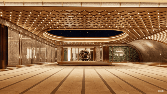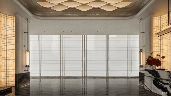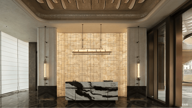 通过全幕墙设计引入大堂自然光,营造出典雅而轻奢的空间氛围,展现京门府邸的精致与优雅。